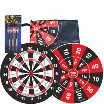 Product Details Dart Board Game Self-Healing Board Double Sided Hanging. High Visibility Graphics. Can be Hung on Wall or Door. 2 in 1 Specifications Includes 3 pcs Steel Dart Flight Size : 16"