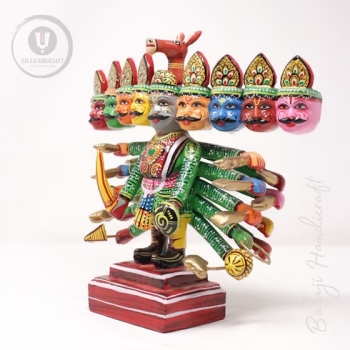 Wooden Ravana Traditional Banaras Handicraft The wooden Ravana traditional Banaras handicraft product is a beautifully crafted wooden statue of Ravana, a mythical character from Hindu mythology. The statue is made using traditional handicraft techniques that have been practiced in Banaras for generations, giving it an authentic and unique look. The statue is made from high-quality wood and is carefully carved by skilled artisans, who pay great attention to detail. The intricate carvings on the statue depict the ten heads of Ravana, along with other details such as his weapons, clothing, and jewelry. The wooden Ravana statue is a popular decorative item that can be used to adorn homes, offices, or any other space. It is also a great gift item for people who appreciate traditional handicrafts and have an interest in Hindu mythology. Overall, the wooden Ravana traditional Banaras handicraft product is a stunning piece of art that showcases the beauty and craftsmanship of Banaras artisans.