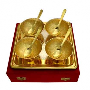 German Silver 4 Round Shaped Bowl & Tray Set with 4 Spoons