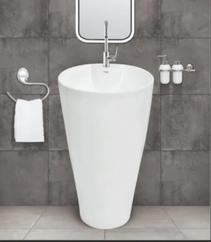 Brand Cura Color White Material Ceramic Mount Type Pedestal Usage/Application Bathroom Shape Round Size/Dimension 460*460*800 mm Pattern/Style Plain Corner Type Rounded Is It Foot Operated No I Deal In New Only Country of Origin Made in India A washbasin which is supported from the floor by a column-like base and made with ceramic material.