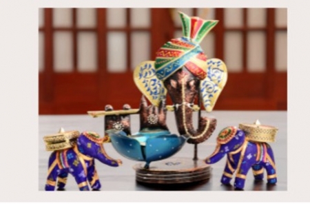 GANESHA T- LIGHT 4" INCH ELEPHANT AVAILABLE IN 7 COLOURS MATERIAL TYPE : IRON & PLASTIC COLOUR : VIOLET & RED SIZES 4" INCH ELEPHANT 10 x 8 INCH GANESHA