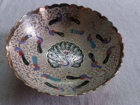 Ethnic Mughal Era Peacock Art of Brass. Diameter : 6 inch. Height : 2.25 inch. Thickness : 3 gauge.