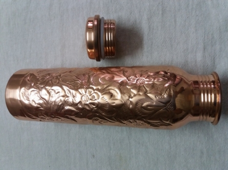 Copper Bottle – Pure Copper Drinking Water Bottle 950 ml. Copper utensils have Ayurvedic health benefits like-haemoglobin synthesis, bone strength, anti-ageing, immunity building, helps In weight loss and reduces joint pain. Pregnant women need copper as it helps in the formation of the unborn child's heart, blood vessels, skeletal and nervous system.
