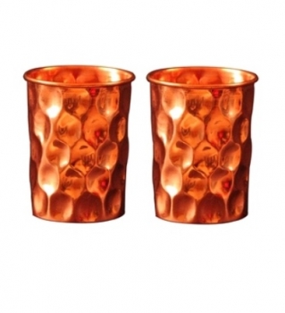 Pure Copper Drinking Water glasses (Set of 2) Diamond Design. This is an Indian handicraft item. Copper utensils have numerous Ayurvedic health benefits.