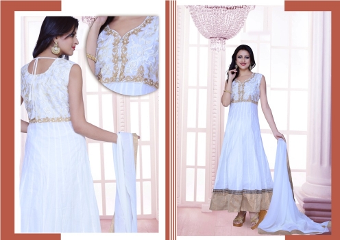 Off-white embroidered festival lawn kameez intricate with resham thread, zari thread, neck work, buttons, floral work, leaf work and patch patti border work.Embroidered work is done on the backside of the kameez.Available with Off-white Cotton Churidar and Off-white Chiffon Dupatta.This ready made kameez is available upto chest size 42 with matching sleeves of 5-6 inches.