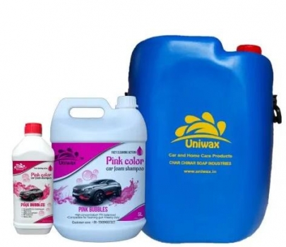 Usage/Application shampoo for autocare Brand uniwax Packaging Type Can Pack Type 50 Packaging Size 1 kg to 50 kg Color pink Pack Size 50 Country of Origin Made in India uniwax colour car Foam shampoo is super dense clinging PINK foam to soften surface dirt. It has water softer quality which gives best result in car. It saves time and effort and create thick pink foam. Great Fragrance and Neutral Ph . Product is extremely effective with hard water. Safe on hands, also helps in cleaning spots from chrome and glass too. it removes Tough Dirt & Road Grime from your Car or Bike. It is work in foaming spray gun, jet foaming machine and foaming jet cylinder