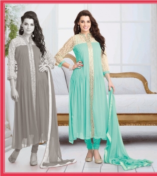 Majesty Pale Cyan Blue Salwar Kameez Paired With A Matching Chudidar Comes With A Matching Dupatta.