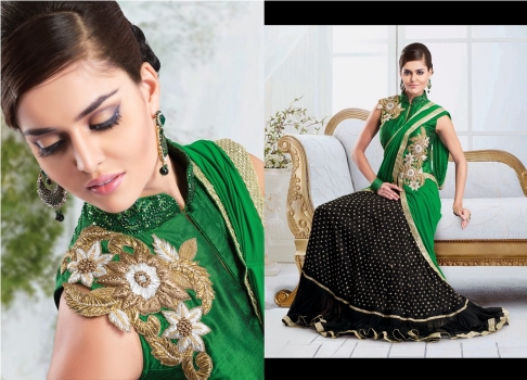 Alluring Black & Green Gown with Bugle Beads Cutdana|Floral Patch|Lace|Resham|Sequins|Stones.