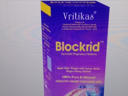 Packaging Size 12 pieces in a carton Form juice Shelf Life 2 yers Color Natural Brand Vritikas Packaging Type 500,1000 ml Blockrid Liquid Vritikas Blodrid liquid is Indias first product to remove any kind of heart blockage.Vritika herbotech pvt ltd has been awarded with National ward for contribution to health industry. Blockrid helps to remove blockage, reduce blood cholestrol, keep heart healthy, supports cardiovascular system. Also helps in weight loss, All type of Vata disorders, helps to remove harful toxins. Blocktid contains: organic herbs collected from Himalayan region. Blockrid contains: Garlic, Ginger, Dalcini, Honey, Lemon and Pure and concentrated Apple cider vineager with mother. Additional Information: Production Capacity: 50000 liter Delivery Time: 15 days after receiving payment Packaging Details: 12 in carton