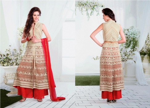 Dazzling Diva Cream Salwar Kameez Paired With A Contrast Red Viscose Georgette Salwar Comes With A Contrast Red Net Dupatta.