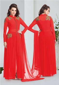 Chic Deep Red Salwar Kameez Paired With A Matching Chudidar Comes With A Matching Dupatta.