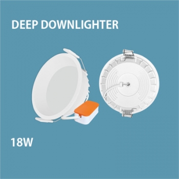 DEEP DOWNLIGHTER WATTAGE 18W POWER FACTOR 0.97 PF CRI 80% INPUT VOLTAGE 90V - 325V, 50Hz COLOURS AVAILABLE CW, NW, WW, RED, GREEN, BLUE, PINK, AMBER( OTHER COLOURS CAN BE CUSTOMIZED) HOUSING POLYCARBONATE