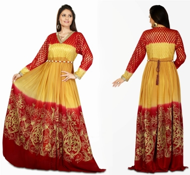 Butta Maroon & Yellow Gown with Jaal Work|Resham|Stones.