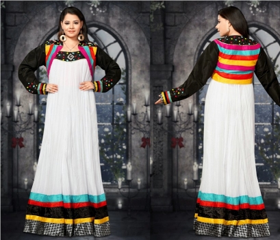 Gleaming Black & Off White Gown with Bead|Lace|Stones.