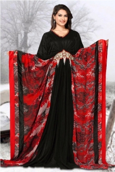 Contemporary Black & Red Gown with Moti|Printed Motifs|Stones.