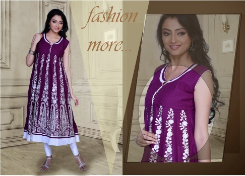 Byzantium Violet embroidered festival kurti intricate with resham thread, stripes work, floral work, leaf work, keri work and patch patti border.This kurti is readymade and is available upto chest size 42