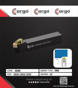 Product Details: Type Required CNC Tool Holder Size/Dimension 25*25 mm Usage/Application TURNING Brand CARGO TOOL Color BLACK Country of Origin Made in India DESIGNATION Dimension(mm) Accessories h b L L1 h1 f SHIM Shim pin clamp screw clamp Wrench MSDNN 16X16 H12 16 16 100 34 16 8 MS1204 CTM617 HL814 ML0625 L2.5,L3.0 MSDNN 20X20 H12 20 20 125 34 20 10 MSDNN 25X25 H12 25 25 150 34 25 12.5 Additional Information: Delivery Time: 2 DAYS IN ALL INDIA Get Best Quote