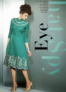 Magnificient Sea Green Ready Made Kurti with Lace|Patch Work|Resham.