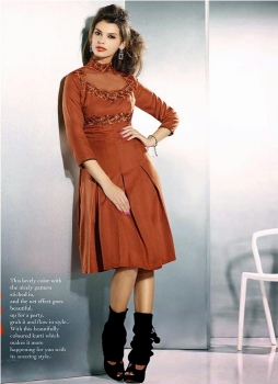 Ethnic Deep Deep Orange Ready Made Kurti with Lace|Resham.