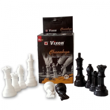 Product Details PLASTIC CHESS COINS 32 Chessmen, The King Measures High. Other Pieces are in Symmetrical to Kings Height. Every Piece is Fitted Inside the Chess Board. This is the unique size. Specifications Brand Vixen Set 1 Count 32 pcs. Bottom Hollow Material Plastic Colour White & Black Packing Box