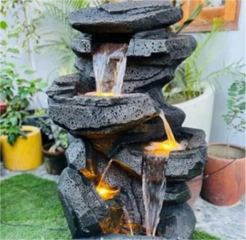 Dhanwanti Fiber Rock Indoor Fountain With Led Light For Home Decor