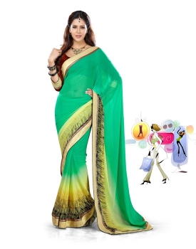 Green Georgette saree paired with Coffi coloured art silk blouse.