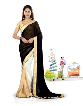Black Georgette & chiffon saree with golden art silk blouse with lace border work.