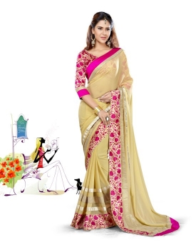 Chikoo Georgette & chiffon saree with a pink art silk blouse with lace border work.