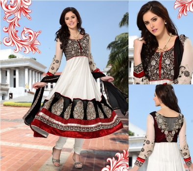 Off-white Semi Stitch georgette kameej & off-white santoon bottom with black georgette dupatta comes with Zari, resham embroidery and patch patta Work.
