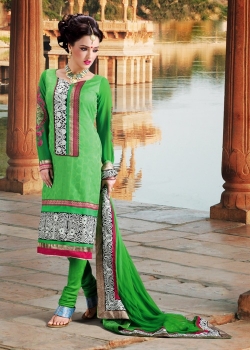 Green Pure Banarasi Jacquard kameez, green santoon bottom & green pure chiffon dupatta with Zari, resham Embroidery butta Work