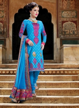 Blue Pure Banarasi Jacquard kameez, blue santoon bottom & blue pure chiffon dupatta with Resham , Zari Embroidery and butta Work.