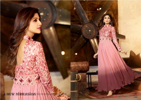 Rose pink Plited Georgette Suit With Embroieded Yock,,Back & Sleeves With Stone work & Georgette Dupatta.