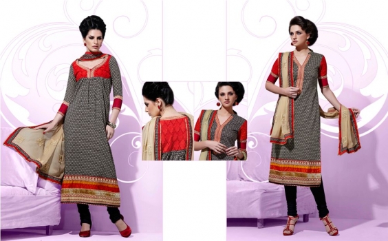 Black cotton kameez & bottom, chikoo chiffon dupatta with Zari, resham embroidery and Lace border