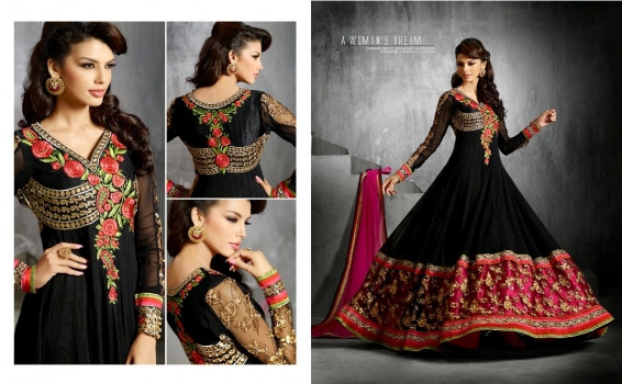 Flamboyant Black faux georgette Salwar Kameez with Jaal Work|Lace|Resham.