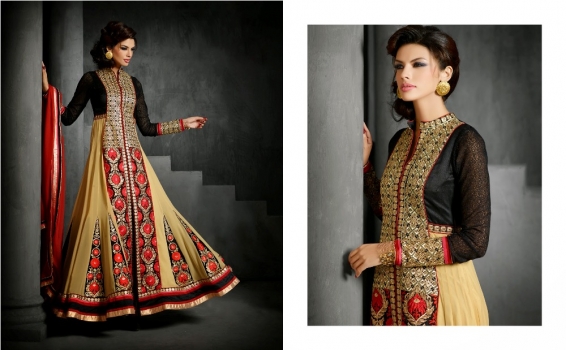 Attractive Black & Cream faux georgette Salwar Kameez with Butta Work|Lace|Resham|Stones.