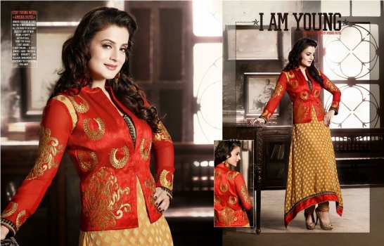 Tranquil Beige & Red brasso Salwar Kameez with Butta Work|Lace|Multi|Patch Work|Resham.
