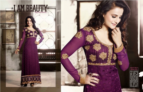 Contemporary Violet brasso Salwar Kameez with Floral Patch|Lace|Resham|Stones.