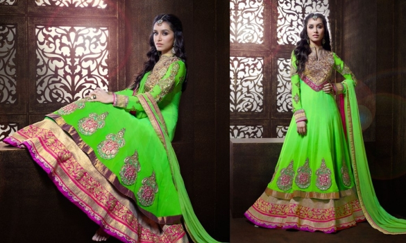 Light green georgette(2 layered) kameez , light green santoon bottom, light green chiffon dupatta come with a santoon inner & Heavy Zari, resham embroidery with stone work and Lace border.