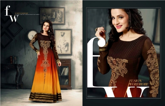 Alluring Brown, Deep Orange & Orange faux georgette Salwar Kameez Comes With A Matching Dupatta & Butta Work|Lace|Patch Work|Resham|Stones.