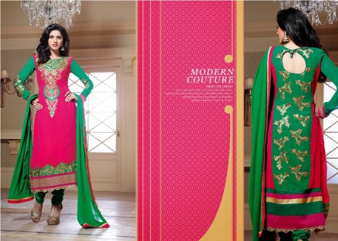 Adorable Green & Pink Faux Georgette Salwar Kameez with Butta Work|Lace|Patch Work|Resham|Stones work.