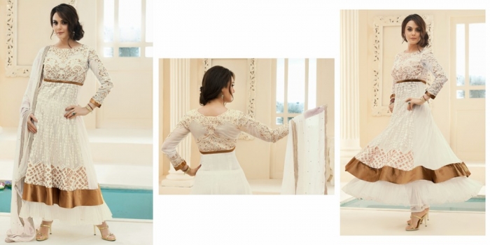Gorgeous Off White net Salwar Kameez Comes With A Matching Dupatta Paired With A Matching Bottom & Jaal Work|Resham|Stones work.