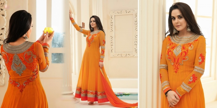 Elegant Deep Orange Faux Georgette Salwar Kameez Comes With A Matching Dupatta Paired With A Matching Bottom & Lace|Resham|Stones work.