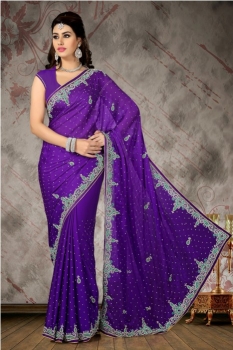 Lush Deep Purple Embroidered Saree with Patch Work|Resham|Stones Paired With A Matching Blouse.