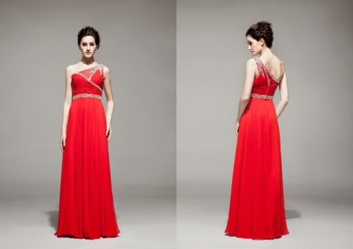 Classy Red Chiffon Dresses with Cubic Zirconia Stones.