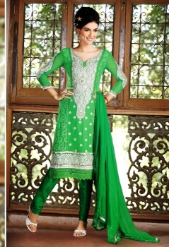 True Elegance Will Come Out Out Of Your Dressing Trend With This Green Faux Georgette Salwar Kameez. The Enticing Bugle Beads Cutdana|Multi|Patch Work|Resham|Stones Work A Substantial Characteristic Of This Attire.