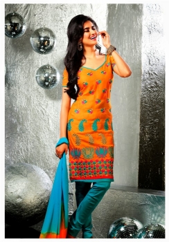 You'll Be Bound To Make A Impressive Style Statement With This Orange Cotton Salwar Kameez. This Charming Dress Is Displaying Some Fantastic Embroidery Done With Multi|Polka Dotted|Resham Work.