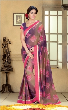 Multicolor Georgette Printed Saree with Purple+Pink Georgette blouse.