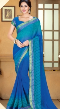 Blue Chiffon Printed Saree with Blue Georgette blouse.
