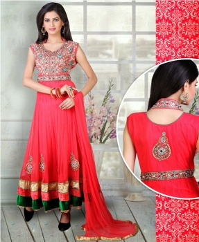 Crimson Red Embroidered Anarkali Kameez [01-ANG-4419]