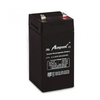 • Brand AMPTEK Part Number AT 4 V 4.5 Battery Type SMF VRLA Capacity 4.5 Ah Battery Chemistry Type LEAD ACIDE Nominal Voltage 4 VOLT Terminal Type PIN TYPE 4 VOLT 4.5 Ah Battery widely used in LED TOURCH LIGHT , TOYS , ELECTRONICS WEGING SCALE , etc.